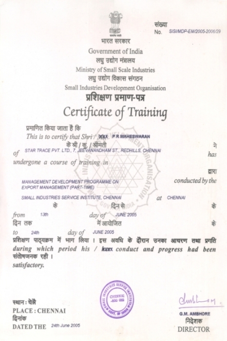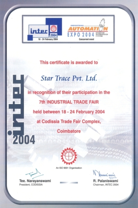 Certificates Awarded to Star Trace Solutions Pvt. Ltd.